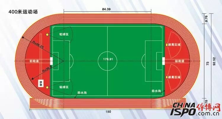400米環(huán)形塑膠跑道運動場。運動場內(nèi)突沿半徑為36米,共8條跑道,環(huán)形跑道內(nèi)設(shè)置100m×65m天然草足球場,南北半圓內(nèi)設(shè)置鉛球區(qū)、跳遠區(qū)、標槍區(qū)、鐵餅鏈球區(qū)、三級跳遠區(qū)、跳高區(qū)、泵房、水池等配套設(shè)施。具體做法如下: