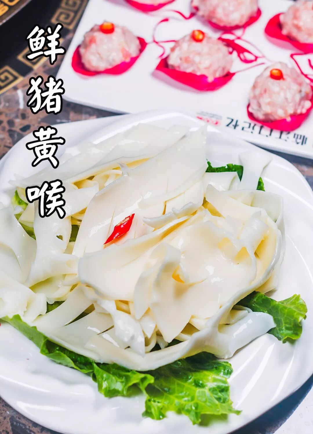 臨江門記憶選用新鮮豬黃喉!白白凈凈的顏色,顯示著豬黃喉被清洗得非常干凈,很是喜人。