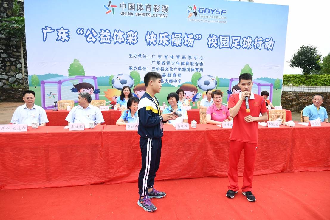 5月28日,由廣東省體育彩票中心、廣東省青少年體育聯(lián)合會攜手開展的廣東“公益體彩 快樂操場”校園足球行動走進(jìn)梅州市五華縣大都中學(xué)。奧運(yùn)冠軍張雁全親臨現(xiàn)場與學(xué)校師生互動,分享傳播奧運(yùn)精神。主辦方還向?qū)W校捐了一大批足球器材,為該校發(fā)展校園足球貢獻(xiàn)力量,同時(shí)助力梅州足球特區(qū)建設(shè)。