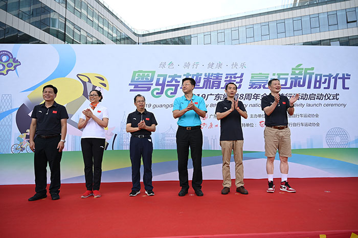 廣東省黃村體育訓(xùn)練中心主任、廣東省自行車運(yùn)動(dòng)協(xié)會(huì)主席蔡建祥,廣東省體育局群體處處長(zhǎng)鐘志金,廣州日?qǐng)?bào)社編委、體育新聞中心主任陳偉勝,廣州日?qǐng)?bào)新媒體編輯部負(fù)責(zé)人、大洋網(wǎng)總編輯曹蘇寧,廣東省體育局群體處副處長(zhǎng)楊英,廣東省體育局青少年訓(xùn)練競(jìng)賽中心副主任姜永軍,廣東省自行車運(yùn)動(dòng)協(xié)會(huì)秘書長(zhǎng)戚宇等領(lǐng)導(dǎo)和嘉賓出席啟動(dòng)儀式,并為騎行活動(dòng)鳴笛發(fā)車。
