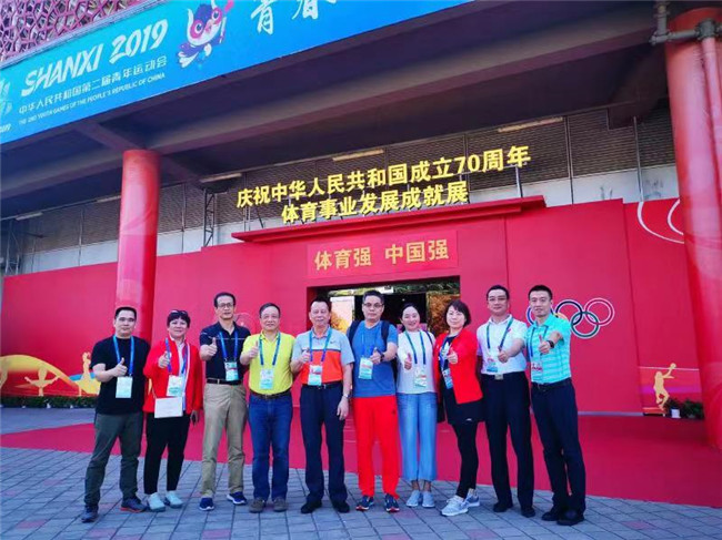第二屆全國青年運動會廣東省代表團副團長、廣東省體育局副局長許建平帶領二青會廣東代表團、運動隊代表一行16人參觀了位于山西體育中心的“體育強中國強——慶祝中華人民共和國成立70周年體育事業(yè)發(fā)展成就展”展覽,并開展了“不忘初心、牢記使命”主題教育。