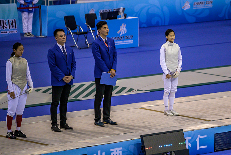 南方網(wǎng)訊 在15日結束的二青會社會俱樂部乙組女子花劍個人賽中,兩位來自廣東萬國深圳國際擊劍訓練中心的小姑娘登上領獎臺,沈玨玲瓏摘得銀牌,賴泳思收獲銅牌。賽后,兩位超級陽光、笑容超級甜美的女孩均表示,很高興!