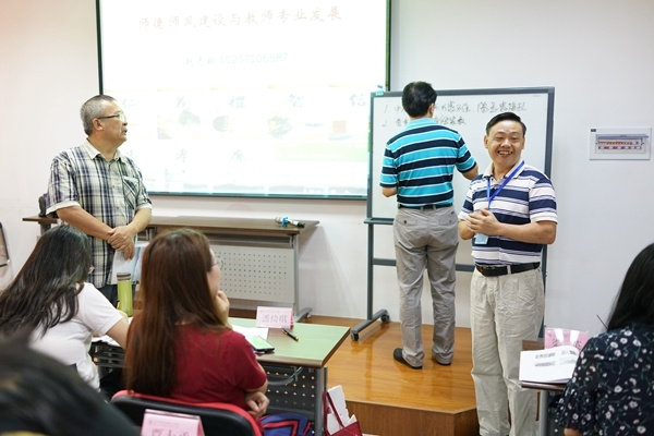 晚上,培訓班的學員兵不卸甲、馬不卸鞍,在師資科黃科長、教育人才中心潘老師和陳老師的組織下,利用休息時間,圍繞教師招聘、人才發(fā)展等工作開展研討。研討提綱由人事科、師資科、人才中心三個科室科長精心擬定,大家圍繞提綱各抒己見,暢所欲言,為中山教育人才隊伍建設獻計獻策。