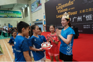 在比賽激烈進行的同時,前世界冠軍張亞雯也來到現(xiàn)場。退役后一直致力于青少年羽毛球培訓(xùn)的張亞雯在現(xiàn)場看到了那么多的小選手倍感親切?!皬V州的小選手羽毛球水平都非常高,這里的羽毛球氛圍也特別好?!睆垇嗹┱f道。而對于小選手,張亞雯也表示:“希望你們能一直堅持打羽毛球,成為未來的世界冠軍?!爆F(xiàn)場張亞雯為小選手們進行了教學(xué)、練習(xí)等互動,而小選手們也給張亞雯帶來了一個驚喜。原來9月9日是張亞雯生日,活動結(jié)束小選手們捧著蛋糕給張亞雯慶生,張亞雯也是非常驚喜,她表示在這里過了一個非常特別的生日。