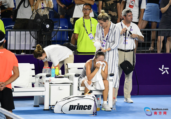 (南方網(wǎng)/訊 記者/朱江偉)9月18日晚,廣州國際女子網(wǎng)球公開賽女單1/8決賽繼續(xù)上演,中國金花彭帥對陣塞爾維亞小將斯托亞諾維奇。最終,彭帥以6-7(4)/6-2/0-6不敵斯托亞諾維奇。比賽末段,彭帥體力不支,但仍咬牙堅持完賽。