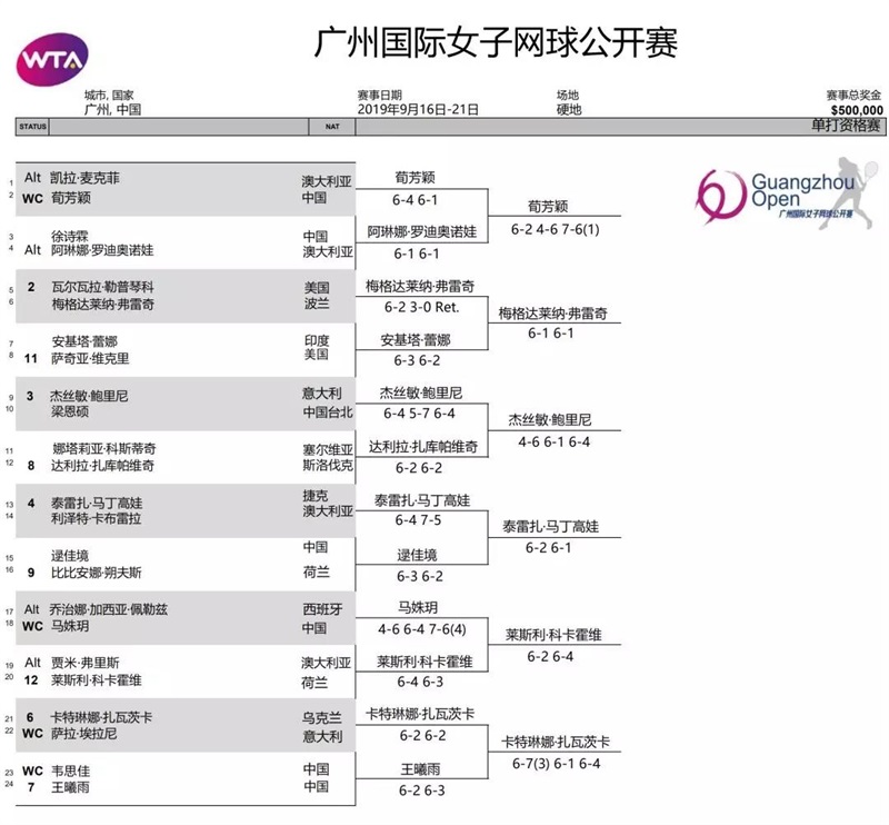 在其他場次的比賽中,3號種子泡利尼4-6/6-1/6-4逆轉(zhuǎn)8號種子扎庫帕維奇,攜手波蘭選手弗雷奇晉級正賽,后者6-1/6-1橫掃印度選手蕾娜,持外卡出戰(zhàn)的小將馬姝玥2-6/4-6不敵科卡霍維。