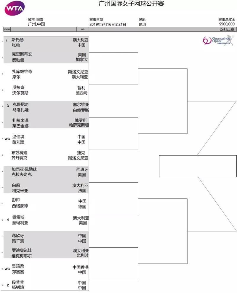 北京時(shí)間9月15日,2019廣州國(guó)際女子網(wǎng)球公開(kāi)賽正賽單打簽表出爐。賽會(huì)頭號(hào)種子、烏克蘭名將、現(xiàn)世界第三斯維托麗娜和衛(wèi)冕冠軍、中國(guó)金花王薔分列頭兩號(hào)種子,各自鎮(zhèn)守上下半?yún)^(qū),首輪分別面對(duì)瑞典選手彼得森和另外一位中國(guó)金花彭帥。