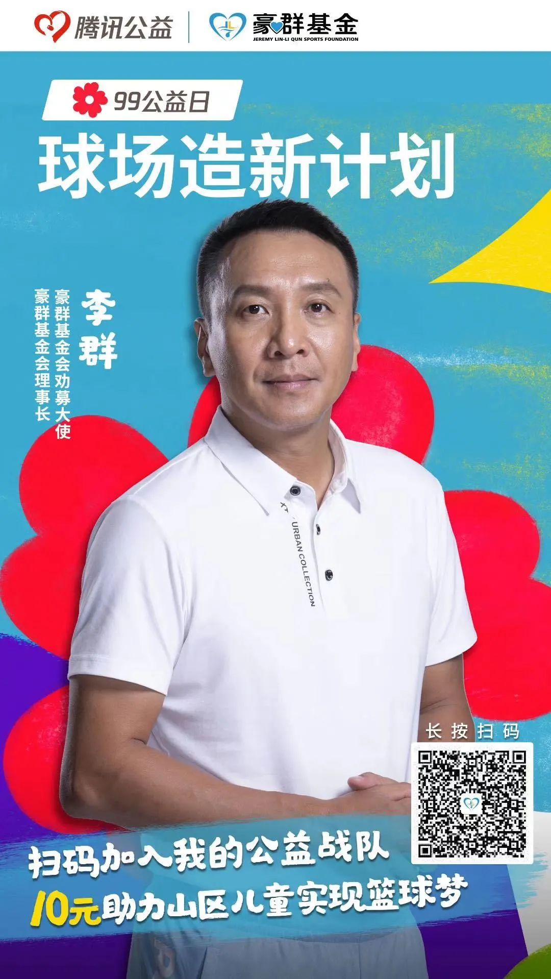 豪群公益    李群參與由豪群公益基金會(huì)發(fā)起的 “山區(qū)球場造新計(jì)劃”募款項(xiàng)目。   這次李群將以勸募大使的身份帶領(lǐng)大家關(guān)注體育教育,助力山區(qū)孩子實(shí)現(xiàn)籃球夢想!   讓大家一起見證山區(qū)球場的改造,讓體育教育與孩子同行,點(diǎn)擊上方海報(bào),長按掃碼加入李群戰(zhàn)隊(duì),“益”起傳遞愛與歡笑。