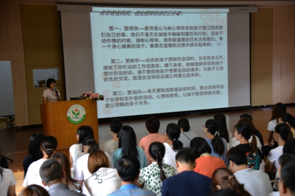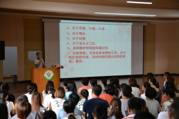與此同時,學(xué)校還組織了新生家長培訓(xùn)會。首先,戴織校長介紹了學(xué)校蓬勃的發(fā)展進程、優(yōu)秀的行政隊伍、先進的教育理念、雄厚的師資力量、特色校本課程與豐碩的育人成果,并詳細指導(dǎo)家長如何幫助孩子做好入學(xué)前的準備,在學(xué)習(xí)、生活習(xí)慣等方面養(yǎng)成良好的習(xí)慣。隨后,李振華副校長、陳文卿主任也針對學(xué)校常規(guī)安排進行了細致的介紹。從幼小銜接的專題講座中,家長們提高了對教育的認識,學(xué)到了實用的教育知識和方法,為孩子們新學(xué)期的學(xué)習(xí)與成長夯實了基礎(chǔ)。