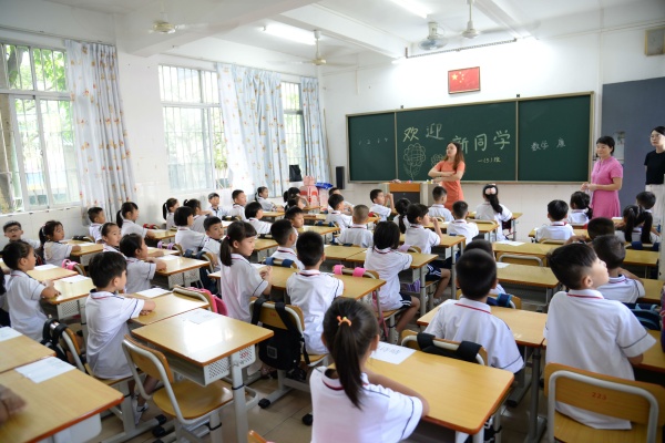 為使此次活動順利開展,戴織校長帶領(lǐng)相關(guān)行政、教師隊伍提前回校舉行了新生培訓(xùn)工作會議,進行了細致充分的準備工作。8月29日早上,學(xué)校領(lǐng)導(dǎo)和老師在校門口歡迎一年級新同學(xué)的到來,熱情指引孩子們找到自己的課室。一年級正、副班主任在課室門口用親切的問候、溫暖的笑容迎接孩子。老師與小朋友互相介紹,了解彼此,孩子們漸漸消除了陌生感。培訓(xùn)內(nèi)容豐富而充實,教師們就學(xué)生的課堂行為規(guī)范、課間文明休息、衛(wèi)生習(xí)慣、隊列訓(xùn)練與安全事項等進行了寓教于樂的培訓(xùn),幫助新生樹立集體觀念和紀律觀念,使其形成良好的學(xué)習(xí)與行為習(xí)慣。孩子們在生動、活潑的入學(xué)培訓(xùn)中認識了新伙伴、熟悉了新校園、學(xué)會了新本領(lǐng)。