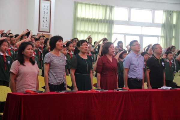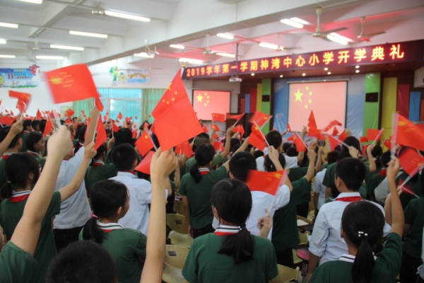 秋雨淅瀝,2019年9月2日上午9點(diǎn),在莊嚴(yán)的國歌聲中以及鮮艷的五星紅旗的映照下,神灣中心小學(xué)全體師生歡聚在多媒體室內(nèi),舉行了熱烈的秋季開學(xué)典禮,共同翻開新學(xué)年嶄新的第一頁。