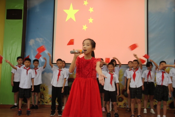 緊接著,學(xué)生代表邱筠善同學(xué)演唱《歌唱祖國》表達(dá)了對(duì)祖國的熱愛之情和爭做品學(xué)兼優(yōu)的好少年的決心。