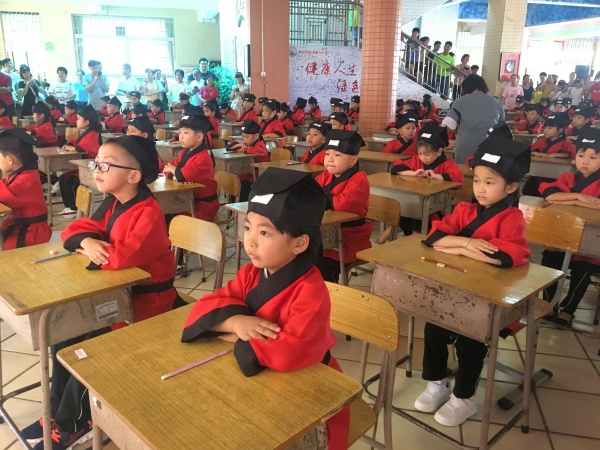 下午,全體一年級(jí)新生接受了以“傳禮承德,開筆啟智”為主題的入學(xué)“開筆禮”,孩子們?cè)谇f嚴(yán)的儀式中感受中華民族勤學(xué)苦練、尊師孝親、仁愛處世等文化精髓。