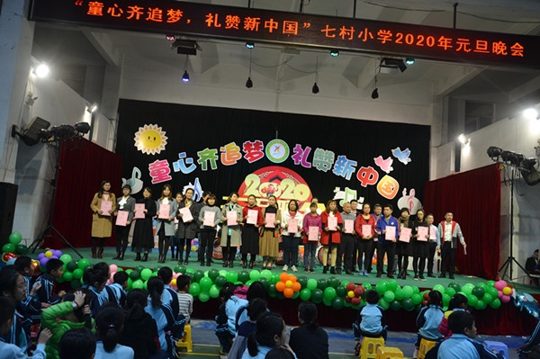 迎元旦佳節(jié),展學(xué)子風(fēng)采。在2020年即將到來之際,七村小學(xué)在2019年12月31日晚上7點,舉行“童心齊追夢.禮贊新中國”迎2020年元旦文藝晚會。出席本次晚會的嘉賓有鎮(zhèn)教育事務(wù)指導(dǎo)中心徐小情女士、七村社區(qū)居委會委員湯秋霞女士、七村幼兒園園長韋玉妹女士。