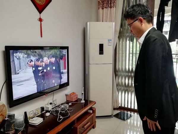 4月4日上午10時,防空警報鳴響。室外,汽車、火車、艦船鳴笛,山河嗚咽,舉國齊悲。身處各地的五桂山學校的師生們懷著沉痛的心情,在電視機前默哀三分鐘,深刻緬懷英雄和逝去的同胞,莊重感,肅穆感撲面而來。