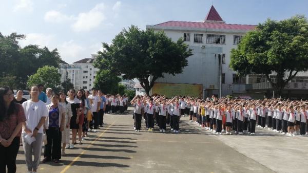 隨著激昂的國歌響起,五星紅旗冉冉升起,全體師生肅立注目,高唱國歌,向國旗致以崇高敬意。