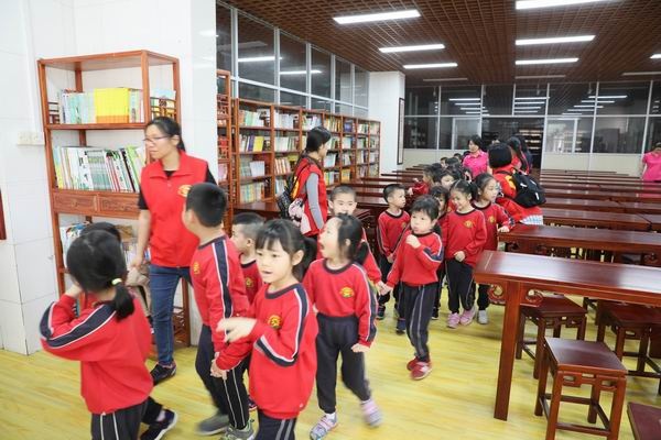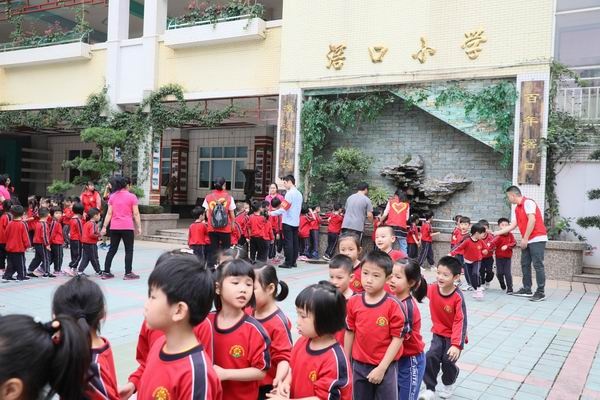 活動的第一個環(huán)節(jié),是小欖鎮(zhèn)中心小學老師帶領(lǐng)小朋友們參觀校園。他們先在滘口廣場合影之后,分成兩支隊伍,在始興廣場參觀了詩禮石、感恩池、校名墻、孔子像等;在校史廳瀏覽滘口小學建校歷史和感人的育人故事;進入始興書院尋找書籍的味道;漫步中心廣場跑道上,觀賞木棉花樹、香樟樹、黃花風鈴木等。