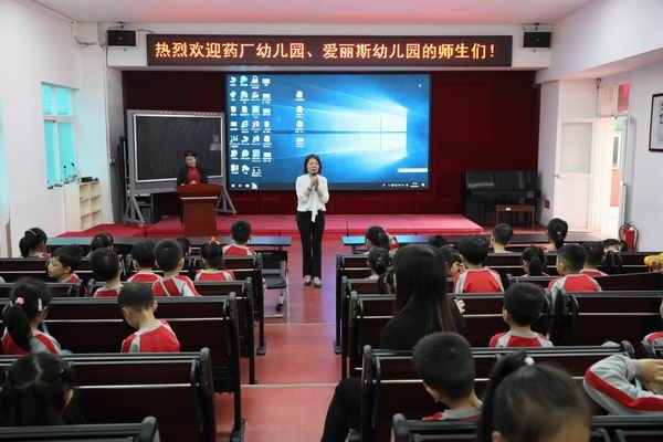 活動最后一個環(huán)節(jié),兩間幼兒園師生一起移步到演播廳,由霍校長介紹了學校悠久的歷史、豐富多彩的活動、優(yōu)秀的教師隊伍、先進的教學設(shè)備,一切都是為了孩子們可以學習更多的文化知識和道德品質(zhì)。小朋友們聽得可仔細了,更加向往未來的小學生活,最后在一片掌聲中結(jié)束了今天愉快的活動。