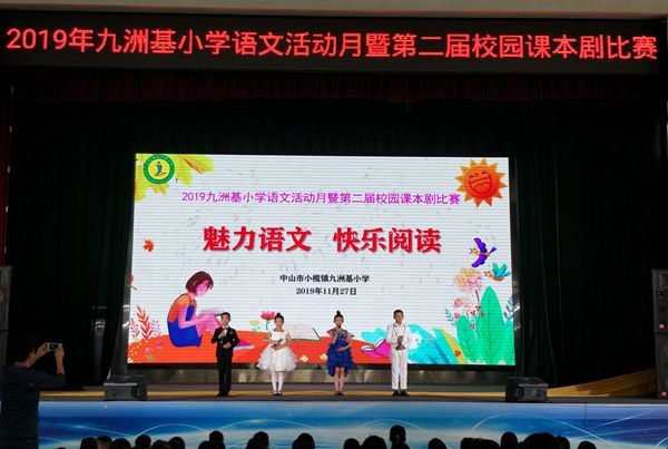 2019年11月27日下午,2019年九洲基小學語文科組第二屆校園課本劇決賽在該校體育館隆重舉行。擔任本次大賽評委的有:廣源小學盧寶華老師、埒西一小學羅海燕老師、績西小學陳瑞燕老師、盛豐小學梁燕霞老師、中心小學李韞婷老師。本次大賽作為本次語文活動月的重頭戲之一,以“魅力語文、快樂閱讀”為主題,共有11個班級成功晉級決賽參與角逐。參賽的劇目既有中華經(jīng)典故事、又有時代歷史名篇,既表現(xiàn)了英雄贊歌,又傳遞了兒童世界的五彩繽紛。一方小小的舞臺,凝聚了古今中外的千年智慧,演繹著一段段可歌可泣的悲歡離合,喜怒哀樂。