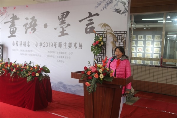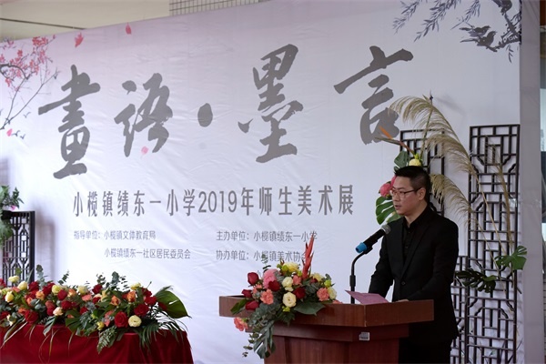 活動開始,績東一小學(xué)蔡春燕校長致歡迎辭,并表達(dá)衷心的感謝,希望績東一學(xué)子繼續(xù)傳承優(yōu)秀傳統(tǒng)文化,墨海弄潮,追夢丹青。學(xué)生代表張景月同學(xué)代表績東一學(xué)子表達(dá)對帶領(lǐng)他們探索藝術(shù)辛苦付出的美術(shù)教師們的感激。緊接著,績東一社區(qū)居委會主任黃慧賢女士、小欖鎮(zhèn)文體教育局局長盧穎禧先生等領(lǐng)導(dǎo)也先后進(jìn)行致辭,對績東一小學(xué)美術(shù)教育藝術(shù)成就給予高度肯定與美好祝愿。綿綿心語,濃濃墨香,伴隨著飄溢的花香,開啟了別致的剪彩儀式。