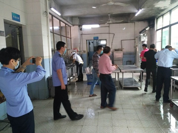 本次飛行檢查主要主要檢查了學(xué)校飯?zhí)迷牧系牟少?gòu)、供應(yīng)商的索證索票、各專間的管理、食品的留樣,相關(guān)制度的公示,資料的歸檔等情況。檢查組成員認(rèn)真地檢查各功能間的衛(wèi)生以及防護(hù)措施,制作流程和留樣質(zhì)量等工作,最后一致肯定了東陽(yáng)學(xué)校食品安全工作落實(shí)到位,責(zé)任到人,各細(xì)節(jié)工作布置得妥當(dāng),飯?zhí)玫牧魳?,制作流程都能按要求保質(zhì)保量。并給了幾點(diǎn)建議:烹調(diào)間荷臺(tái)上用瓦缽盛裝的各種用于烹調(diào)的佐料要對(duì)應(yīng)標(biāo)明相關(guān)物品的標(biāo)簽;預(yù)進(jìn)間的洗手池要徹底清洗干凈;粗加工間和備餐間的紗窗門,要安裝彈簧,能夠讓此門自動(dòng)閉合;食品留樣冰箱里的留樣,容器上面的標(biāo)簽日期要精確。并提醒采購(gòu)人員要提高警惕,物品來(lái)源一定要索證索票,要與正規(guī)貨商簽訂相應(yīng)的合同,所有的有葉蔬菜、無(wú)葉瓜果都要進(jìn)行藥檢,預(yù)防萬(wàn)一;飯?zhí)貌糠衷O(shè)備要求更新、維修。檢查組田醫(yī)生也提醒,要老師們對(duì)學(xué)生進(jìn)行毒蘑菇預(yù)防教育工作,學(xué)校食品安全要嚴(yán)把關(guān),留樣、制作流程要相關(guān)人員跟進(jìn)。教育事務(wù)指導(dǎo)中心黃校長(zhǎng)強(qiáng)調(diào):食堂主管人員、食品衛(wèi)生監(jiān)督員在食品安全上一定要打起十二分精神,不得馬虎,不得掉以輕心,堅(jiān)決杜絕一切安全事故的發(fā)生。