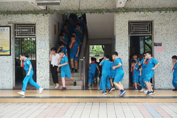 為了演練順利安全地進(jìn)行,學(xué)校制定了詳細(xì)的消防逃生演練方案,對各班逃離的路線及每位配班老師的職責(zé)、每層樓梯口的值班老師等內(nèi)容都作了明確的規(guī)定。下午3點整,一陣急促的警報聲隨即響徹校園。各班正副班主任迅速到達(dá)所任班級維持秩序,帶領(lǐng)學(xué)生捂住口鼻,按照疏散要求,將學(xué)生沿著學(xué)校指定樓梯口快速前進(jìn),有序撤離到學(xué)校操場的安全區(qū)域。隨即各班主任清點人數(shù),匯報給學(xué)校負(fù)責(zé)安全工作的張觀生主任。杜鎮(zhèn)材副校長對本次消防安全演練作了總結(jié)發(fā)言。他表揚了在演練活動中做得好的班級,并強(qiáng)調(diào)一旦身邊發(fā)生突發(fā)事件,要沉著應(yīng)對,有效掌握在危險環(huán)境中迅速逃生、自救、互救的基本方法,切實提高抵御和應(yīng)對緊急突發(fā)事件的能力。