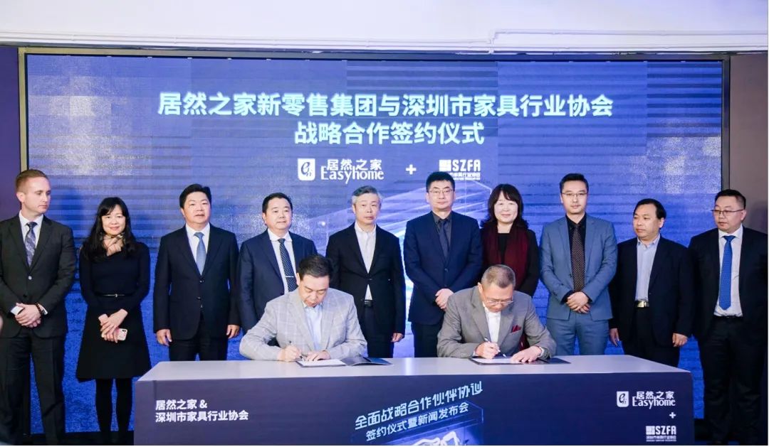 1月8日,居然之家與深圳市家具行業(yè)協(xié)會(huì)全面戰(zhàn)略合作伙伴簽約儀式暨新聞發(fā)布會(huì)在深圳家協(xié)總部隆重舉行。