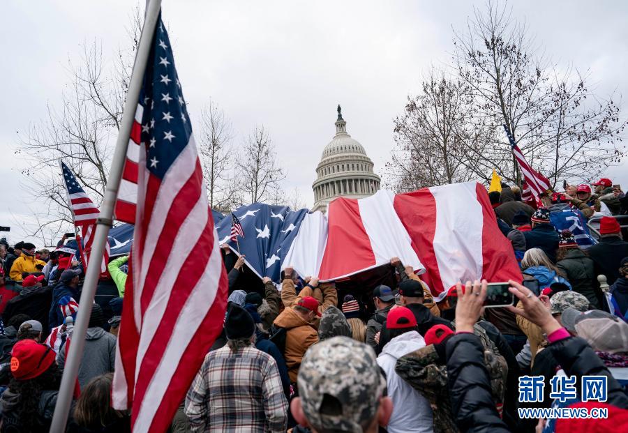 這是1月6日在美國(guó)華盛頓拍攝的美國(guó)總統(tǒng)特朗普的支持者在國(guó)會(huì)大廈前舉行示威游行的資料照片。新華社記者 劉杰 攝