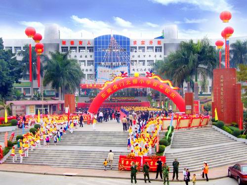 1999年榮晉“東莞市一級學校”、2000年評為“東莞市綠色學校”、2003年評為“廣東省綠色學?!?、2004年6月榮晉“廣東省一級學校”、2007年評為“東莞市文化建設標兵學?!?、“東莞市現代教育技術實驗學校”。2008年1月8日舉行了盛大的百年校慶典禮。2008-2010年,在虎門鎮(zhèn)政府的領導下,順利完成了與陳黃村小學、赤崗小學、居岐小學的合并。2011年通過了“廣東省現代教育技術實驗學?!钡拇_認評估、力爭本學年通過最后評估。(圖8)