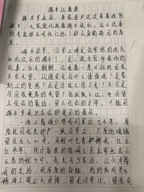 這次端午節(jié)主題活動(dòng)內(nèi)容有:1、“粽子情,我們傳”。要求初一級(jí)學(xué)生在2020年6月25-27(端午假期)在家里包一次粽子、制作香囊、掛艾草。2、“傳經(jīng)典,誦祖國(guó)”。要求初二級(jí)學(xué)生以端午節(jié)為主題,朗誦一首詩歌(視頻拍攝)、寫一篇抒情文章、書寫一幅對(duì)聯(lián)。初一、初二級(jí)各班都積極開展了“端午主題”活動(dòng),讓學(xué)生感悟傳統(tǒng)文化的魅力,接受中華悠久文明的洗禮和傳統(tǒng)美德的熏陶,增強(qiáng)民族自豪感,用中華傳統(tǒng)節(jié)日引領(lǐng)同學(xué)們?cè)娨獬砷L(zhǎng)。