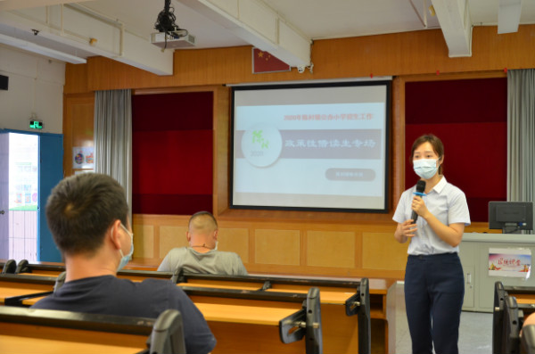 會議分為政策解讀、網(wǎng)上報名操作指引和現(xiàn)場答疑三個環(huán)節(jié)。會議伊始,黃曉芳副主任就對各位家長的蒞臨表示了熱烈的歡迎和感謝。接著,她從本次招生對象、報名方法、積分條件、注意事項等各方面對2020年陳村鎮(zhèn)公辦小學(xué)一年級政策性借讀生招生政策進行了詳細的解讀。此外,還對本次網(wǎng)上報名操作進行了詳盡指引。