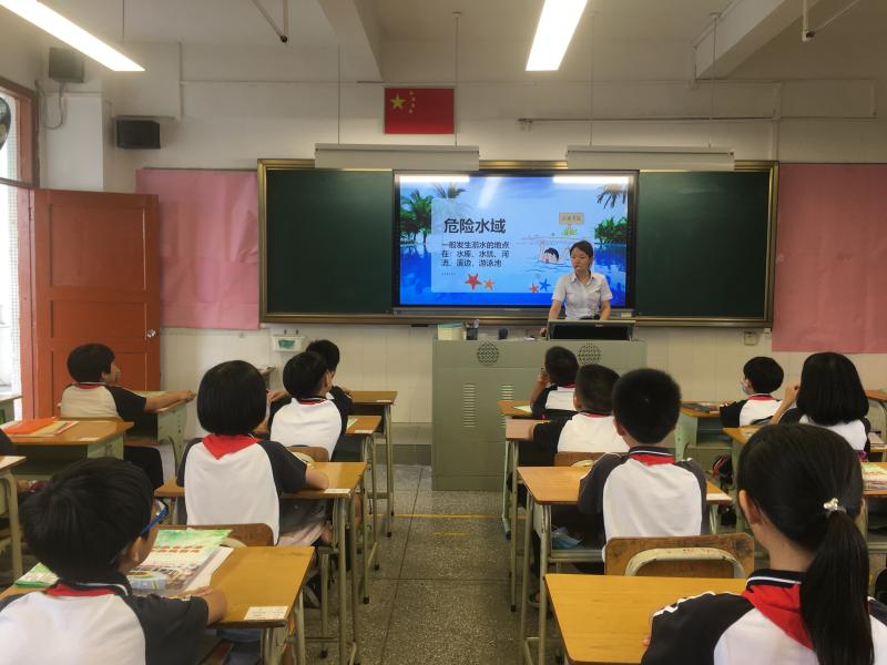 接著,交通副校長(zhǎng)劉炎校長(zhǎng)與法制、禁毒副校長(zhǎng)曹少強(qiáng)校長(zhǎng)通過廣播給孩子們上了一節(jié)生動(dòng)的法制交通安全課講話,采取了社會(huì)當(dāng)前的具體案例進(jìn)行了分析。在防溺水安全主題班會(huì)中,用慘痛的事故案例教育學(xué)生安全無小事,時(shí)刻牢記安全,讓安全的警鐘長(zhǎng)鳴,在安全的懷抱中成長(zhǎng)。隨后學(xué)校大隊(duì)委也宣讀倡議書,提醒同學(xué)們假期注意安全,還針對(duì)假期安全對(duì)全體學(xué)生做出了具體的要求。孩子們認(rèn)真聆聽,紛紛表示要遵紀(jì)守法,過一個(gè)平安、快樂的假期。