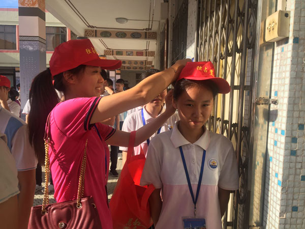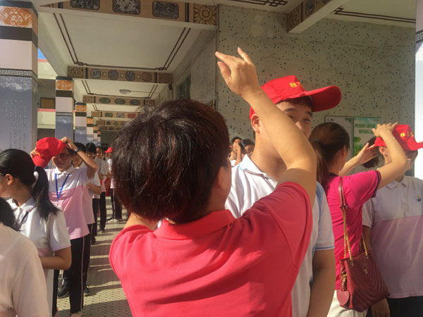 活動第一環(huán)節(jié)是由我校謝文忠校長致辭。謝校長為即將起航的學(xué)子送上了真誠的祝愿,他深情地寄語全體初三同學(xué):“戰(zhàn)馬嘶、軍號響,你們即將上戰(zhàn)場,一千余日的學(xué)習(xí)征途,你們?yōu)⑾铝诵燎趭^斗的汗水,你們留下了馳騁校園的奮斗過的身影。面對中考,準(zhǔn)備充分的你們要樹立必勝的信心,保持好良好、樂觀的心態(tài),沉著冷靜,相信永不服輸?shù)哪銈兌茉谥锌己臀磥砣松呐实侵校T造青春的輝煌!”謝校長激動人心的話語,讓每個學(xué)生都充滿了正能量,這必將成為學(xué)生中考前進(jìn)的動力?;顒拥诙h(huán)節(jié):七月中考,天氣炎熱,烈日高照,學(xué)校特意為學(xué)生準(zhǔn)備紅色戰(zhàn)帽,遮擋烈日,上面印有“獨占鰲頭”,寓意學(xué)生中考“魁星點頭,獨占鰲頭”。謝文忠校長和李日和校長親自為各班代表進(jìn)行授帽儀式,鼓勵學(xué)生。活動第三個環(huán)節(jié):謝文忠校長授校旗給學(xué)生代表三7唐鑫豪,學(xué)生代表揮動校旗,全級齊喊口號“鎮(zhèn)中加油,中考必勝”!我校2020年中考壯行儀式的成功舉行,讓初三學(xué)子對即將到來的中考有了更堅定的信心。相信同學(xué)們在2020年中考中定能不負(fù)期望,取得理想的成績,金榜題名,獨占鰲頭!為自己、也為我校書寫新的輝煌!