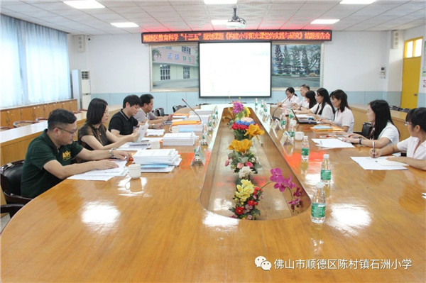 秋高氣爽,石洲小學(xué)的科研碩果累累。為了進(jìn)一步豐富學(xué)校陽光教育內(nèi)涵,推進(jìn)陽光課堂建設(shè),及時(shí)總結(jié)和推廣課題研究成果,8月28日下午,石洲小學(xué)舉行了順德區(qū)教育科學(xué)“十三五”規(guī)劃課題《構(gòu)建小學(xué)陽光課堂的實(shí)踐與研究》結(jié)題報(bào)告會(huì)。順德區(qū)教育發(fā)展中心教育科學(xué)研究室研究員葉建老師,順德區(qū)教育發(fā)展中心小學(xué)語文教研員林雪玲老師,順德區(qū)教育發(fā)展中心政治教研員薛國雄老師,陳村鎮(zhèn)教研室羅偉棠主任和李學(xué)英副主任;石洲小學(xué)全體行政及全體課題組成員出席了會(huì)議。