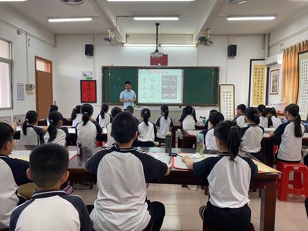 為弘揚(yáng)中華優(yōu)秀傳統(tǒng)文化,提升學(xué)生漢字規(guī)范書寫水平,推動學(xué)校書法特色活動的發(fā)展,區(qū)教育局、區(qū)語委委托順德區(qū)書法家協(xié)會開展書法進(jìn)校園活動,送課到學(xué)校,打造語言文字示范校、特色校。