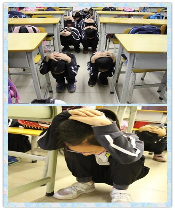 下午4時35分,隨著一陣急促的警鈴聲大作,演練正式開始。本次演練包括兩個部分:地震避險和震后疏散。當聽廣播連續(xù)長鳴60秒,廣播報“現(xiàn)在地震來襲,實施緊急避險”,教師立即告知學生“地震來了,同學們注意避險”,并指揮學生就近蹲在課桌臺旁邊,并打開所有的門。只見教室內(nèi)師生優(yōu)先選擇課桌、墻邊的活命三角區(qū),迅速地蹲下避險,空間不足的師生則用書包或書本保護頭部,在課桌旁避險。1分鐘后,當學校廣播播報“地震應(yīng)急避險結(jié)束,實施緊急疏散”。教師告知學生:“現(xiàn)在開始撤離教室”,跟班教師一前一后引導學生疏散,按指定逃生路線,迅速有序地疏散到學校運動場的安全地帶。隨即各班主任清點人數(shù)。整個地震避險及疏散演練過程秩序井然。