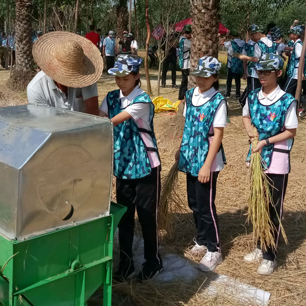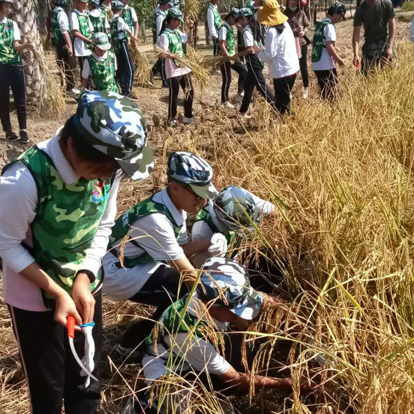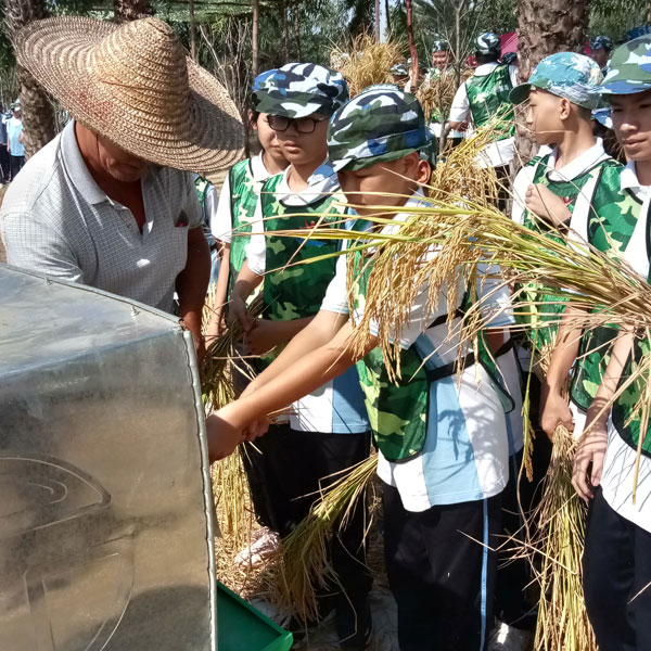 在活動(dòng)之前,學(xué)校制定了詳細(xì)的安全預(yù)案,召開(kāi)安全會(huì)議,強(qiáng)調(diào)外出安全注意事項(xiàng),對(duì)研學(xué)拓展活動(dòng)進(jìn)行了精心組織和周密安排,確保出行的安全。當(dāng)天早上7點(diǎn)30分,同學(xué)們排著整齊的隊(duì)伍,迎著朝陽(yáng),帶著愉快的心情向廣東省中小學(xué)綜合實(shí)踐教育基地---海心研學(xué)教育基地出發(fā)了。到達(dá)目的地后,同學(xué)們就馬上開(kāi)展農(nóng)田勞作--收割、打谷、扎稻草人的實(shí)踐活動(dòng)中,在現(xiàn)場(chǎng)人員的指導(dǎo)下同學(xué)們就開(kāi)始了割稻活動(dòng),這些從來(lái)沒(méi)有從事過(guò)農(nóng)業(yè)勞作的初一同學(xué)們拿著一把小鐮刀在教官的指導(dǎo)下一把一把的割起水稻來(lái),割完后還要通過(guò)打稻機(jī)將稻谷打出來(lái),最后小組合作把稻稈扎成稻草人;在安全教育--心肺復(fù)蘇活動(dòng)中。教官首先向同學(xué)們介紹了心肺復(fù)蘇的重要性,接著向同學(xué)們示范了整個(gè)過(guò)程。同學(xué)們都目不轉(zhuǎn)睛的看著,認(rèn)真的學(xué)習(xí)。接下來(lái)就是同學(xué)們的實(shí)踐時(shí)間,大家都躍躍欲試,卻發(fā)現(xiàn)并沒(méi)有看上去這么容易。學(xué)完了心肺復(fù)蘇后,同學(xué)們收獲良多。這是一堂特殊的課,不僅教授了同學(xué)們一項(xiàng)特殊技能,更讓他們知道了生命的脆弱,同時(shí)也感受到了醫(yī)護(hù)人員救死扶傷的辛苦。