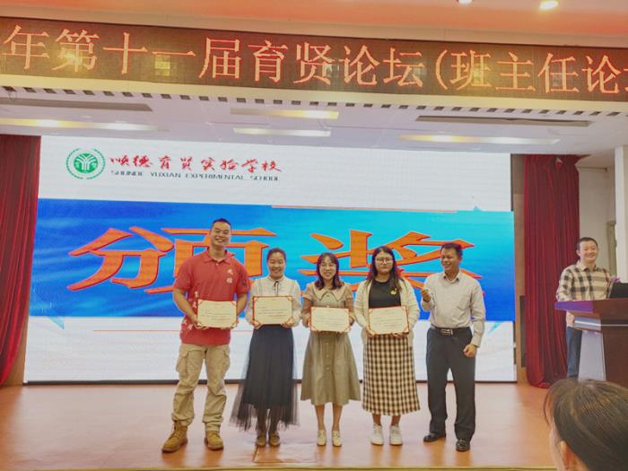 盧林副校長(zhǎng)為四位班主任頒獎(jiǎng)