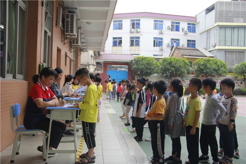 下午兩點(diǎn)半,驗(yàn)收活動(dòng)正式開始!一年級(jí)的孩子們?cè)诒景嗾Z文老師的帶領(lǐng)下排著隊(duì)依次站在主考老師面前,一絲不茍地讀著拼音。