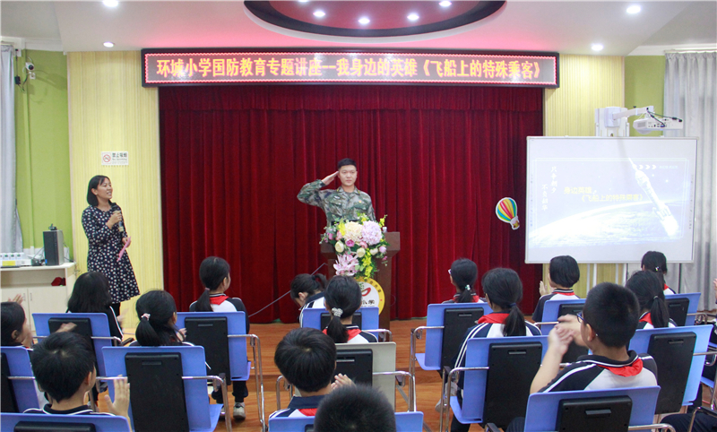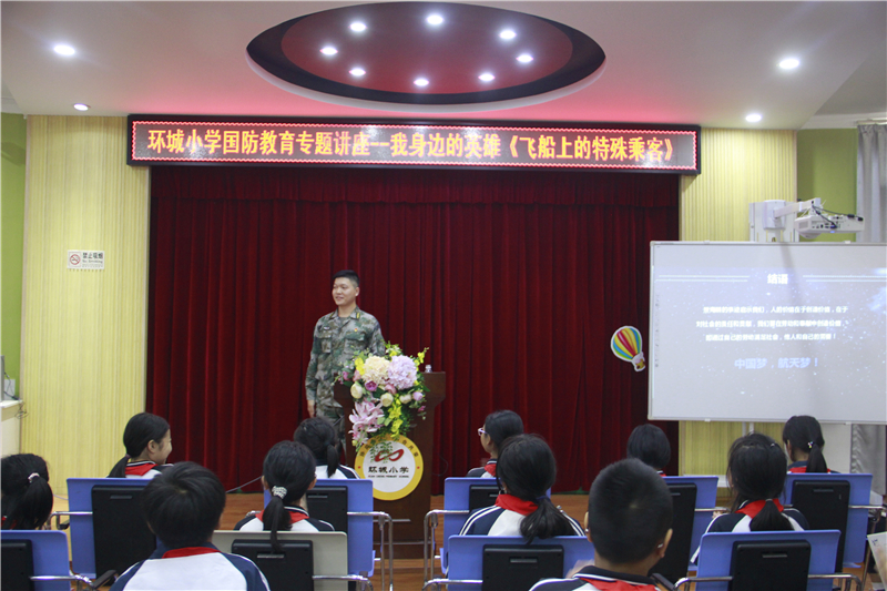 劉連長(zhǎng)以“飛船上的特殊乘客”為主題,向環(huán)小學(xué)子們分享了在空軍部隊(duì)中的所見和所感。隨后,劉連長(zhǎng)向孩子們?cè)敱M地介紹了我國(guó)航天事業(yè)所取得的成就,分享了楊利偉、景海鵬等宇航員為我國(guó)航天事業(yè)所做出的卓越貢獻(xiàn)。