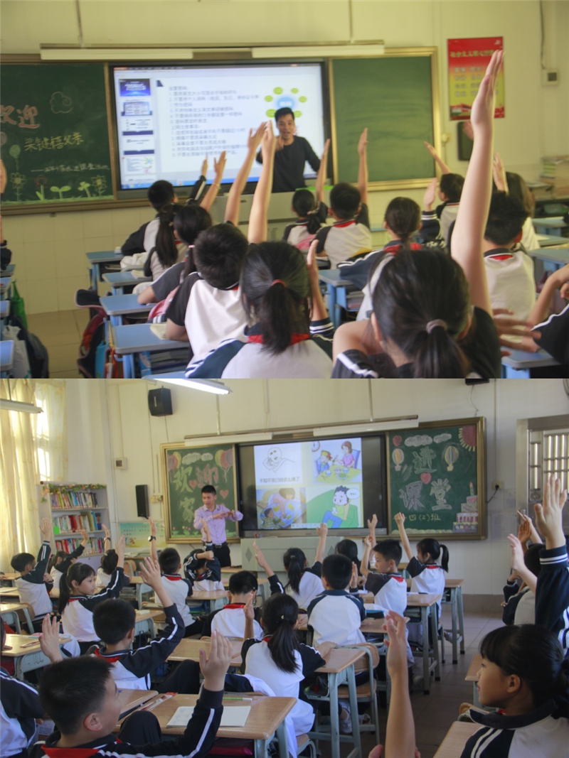課堂上,孩子們聽得全神貫注,一只只小手高高舉起,饒有興趣地對上課的家長問這問那,一節(jié)課下來,孩子們有了不少的收獲。
