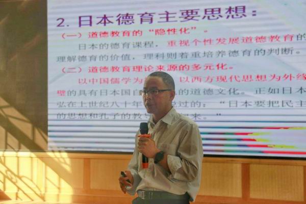 接著是廣東第二師范學(xué)院殷麗萍教授開(kāi)展專(zhuān)題講座《提升教師課程思政能力的思路對(duì)策》。殷教授圍繞課程思政的時(shí)代要求、構(gòu)建課程思政工作體系、案例破析等方面,結(jié)合具體的德育管理案例,展示如何提升教師課程思政能力的思路,殷教授的這些對(duì)策大大地啟發(fā)了在座的老師們,贏得了在座老師們的熱烈掌聲。