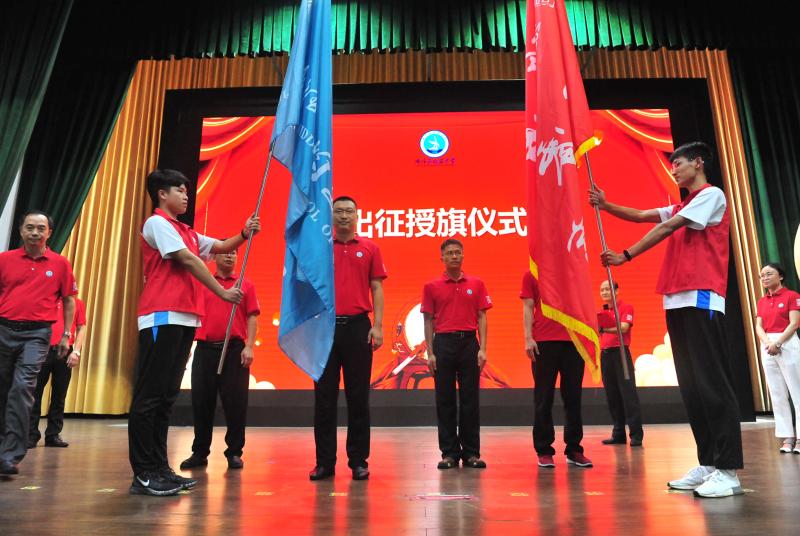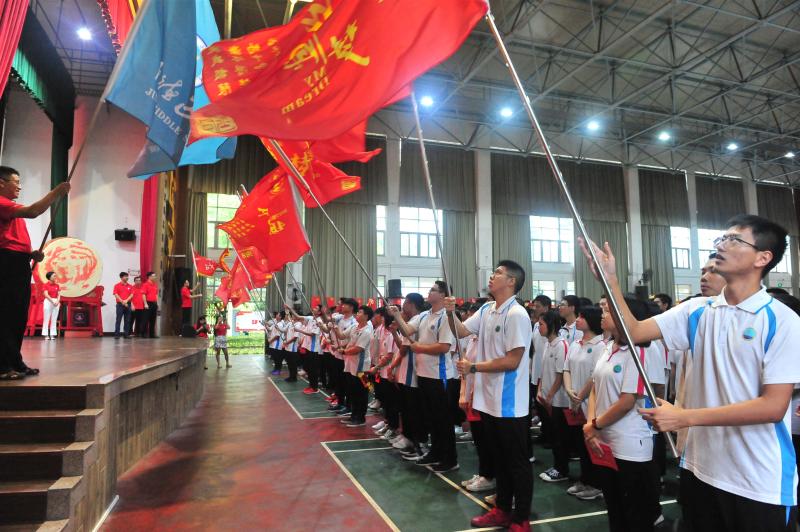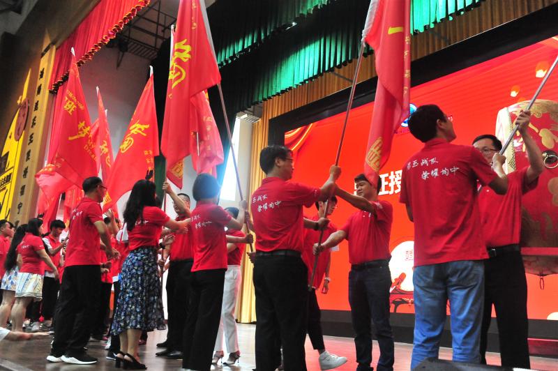 再授戰(zhàn)旗――羅桂根校長為高三年級丘建龍主任授戰(zhàn)旗,張超副校長為唐曉文副主任授校旗,丘主任為閆志才級長授戰(zhàn)旗。戰(zhàn)旗是隊伍的鋼鐵血肉,它是我們戰(zhàn)斗力量的鑄就!