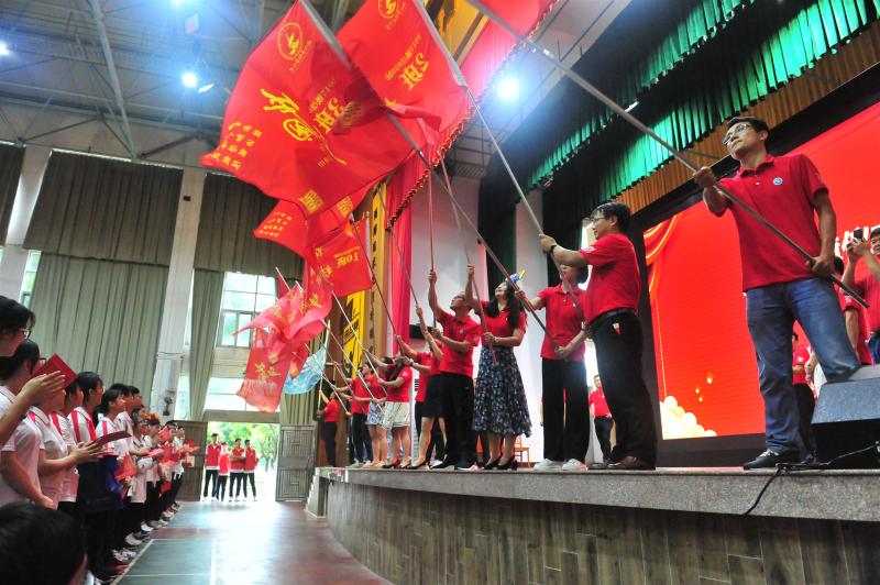 三授班旗――全體行政為高三全體班主任授班旗。班旗是隊伍的堅強陣地,它是我們戰(zhàn)斗力量的迸發(fā)!