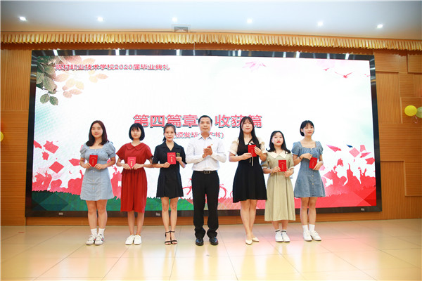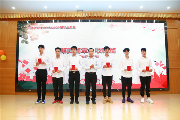 第四篇章:收獲篇。學(xué)校為2020屆畢業(yè)生舉行了簡(jiǎn)單而隆重的畢業(yè)證書頒發(fā)儀式,梁澤洪校長(zhǎng)為畢業(yè)生頒發(fā)畢業(yè)證書,合影留念,儀式感滿滿。這一幕,深深地留在每一個(gè)畢業(yè)生的腦海里。