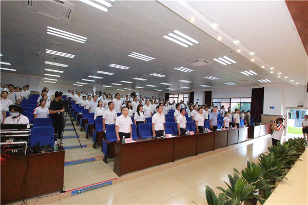 特殊時期的特殊學期,在線下復學的兩個月后迎來了特殊的散學禮,2020年7月17日上午,陳村職業(yè)技術(shù)學校舉行了線上線下相結(jié)合的2019學年第二學期期末總結(jié)表彰暨散學典禮,主會場設(shè)在綜藝樓報告廳,分會場是各班教室,主會場的盛況通過網(wǎng)絡(luò)直播現(xiàn)場分享到各個分會場。 陳村鎮(zhèn)消防中隊隊長、陳村職校消防校長程巍,學校全體行政、教師及學生代表在主會場觀禮。 散學典禮由司徒葵東副校長主持,在雄壯的國歌聲中拉開帷幕。