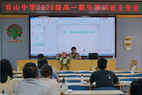 主管德育的高一落級行政肖楚熊副主任為班主任們一一解讀了軍訓(xùn)各項(xiàng)文件,尤其是2020級高一軍訓(xùn)具體工作指引,安排了軍訓(xùn)前、軍訓(xùn)入營當(dāng)天、軍訓(xùn)期間的各項(xiàng)工作任務(wù),期望能給高一新生一個完美的軍訓(xùn)體驗(yàn)!心理教師周昀則從專業(yè)視角出發(fā)為班主任呈現(xiàn)了一場精彩的分享。容山中學(xué)歷來重視心理工作,重視學(xué)生的心理健康教育,教師們在專業(yè)心理教師的指引下會更好地完成學(xué)生的心理建設(shè)。心理科組還為學(xué)生準(zhǔn)備了第一次班會課和班主任的祝福語卡片,期待一進(jìn)門學(xué)生就能感受到容山中學(xué)對他們的愛和期許,更加努力,不負(fù)韶華!