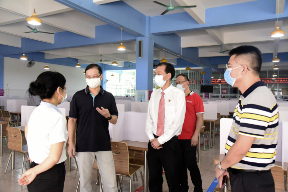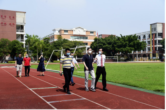 2020年8月29日上午,順德區(qū)教育局黨組書記陳宇瑩偕同區(qū)教育局辦公室副主任羅泉良來到順德華僑中學,對華僑中學校園疫情防控和新學期開學準備工作進行督查檢查。學校黨總支書記、校長吳劍平等行政人員陪同督導檢查。