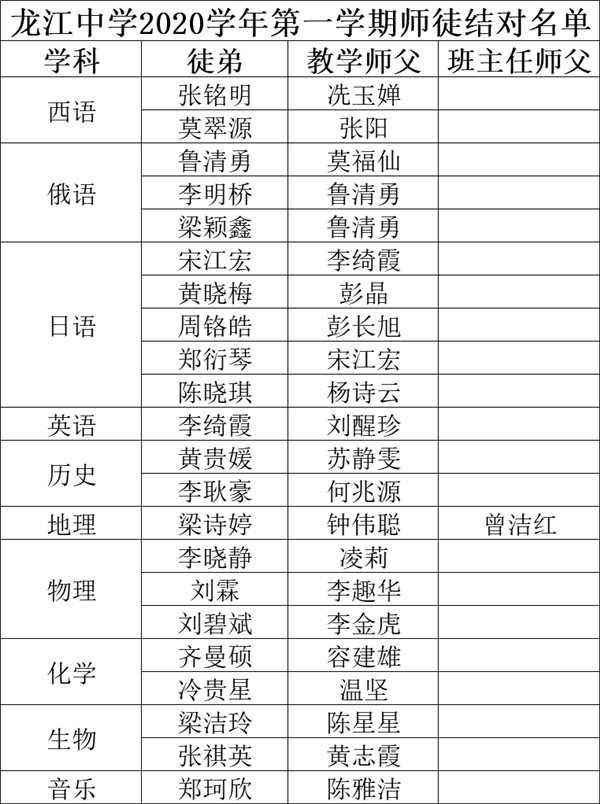 新老教師幫扶是我校加強(qiáng)教師隊伍建設(shè)的重要舉措,為新教師快速成長創(chuàng)造了有利條件。相信在師徒雙方的共同努力下,一定會達(dá)到“教學(xué)相長,共同提高”的目的,攜手創(chuàng)造龍中嶄新美好的未來。