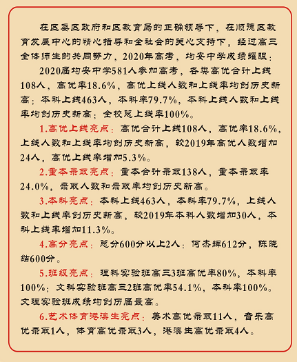 2021屆高三年級學子們將不辱使命,明年的六月你們定會在高考中旗開得勝,金榜題名,創(chuàng)造均安中學的新輝煌!
